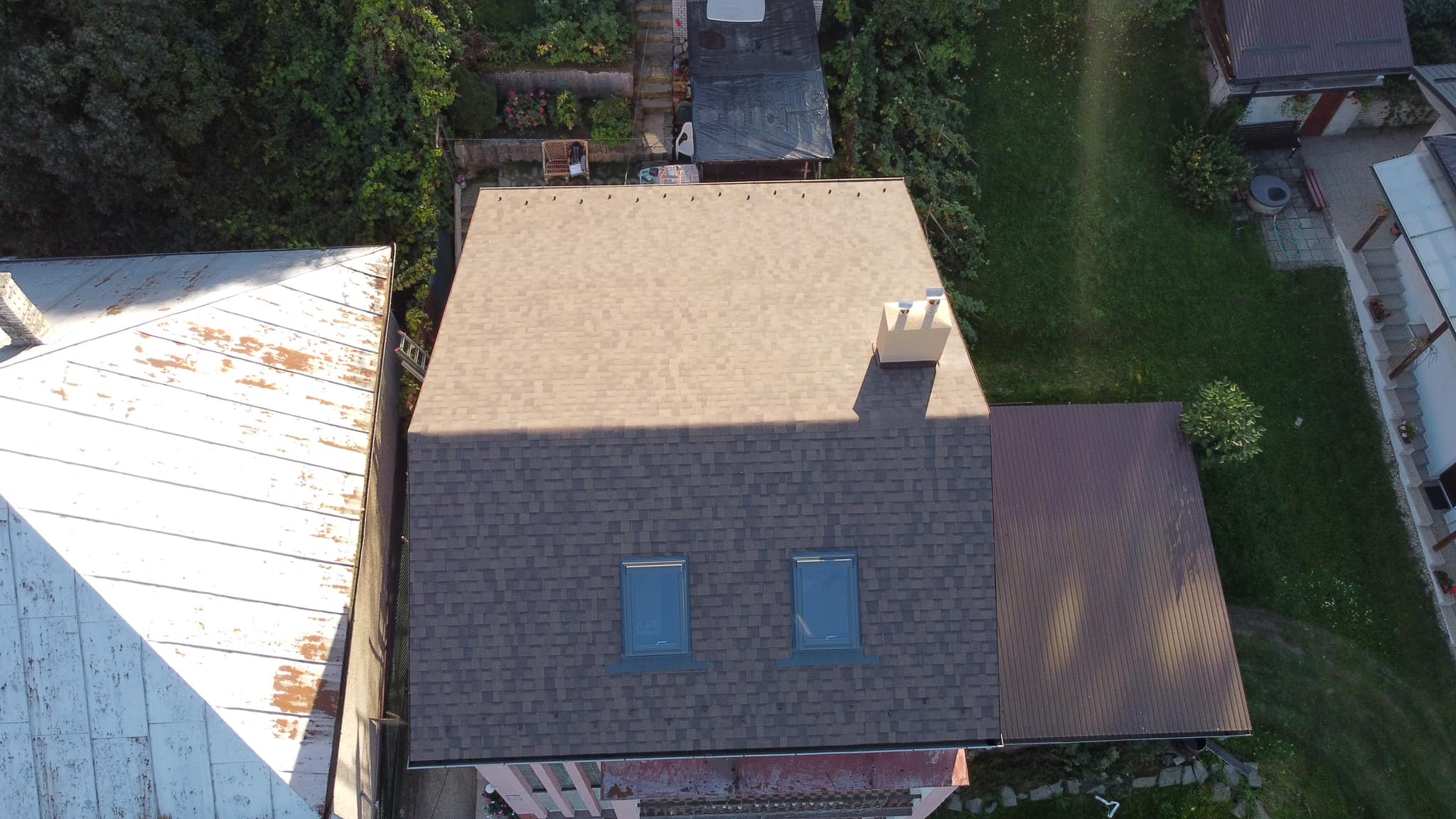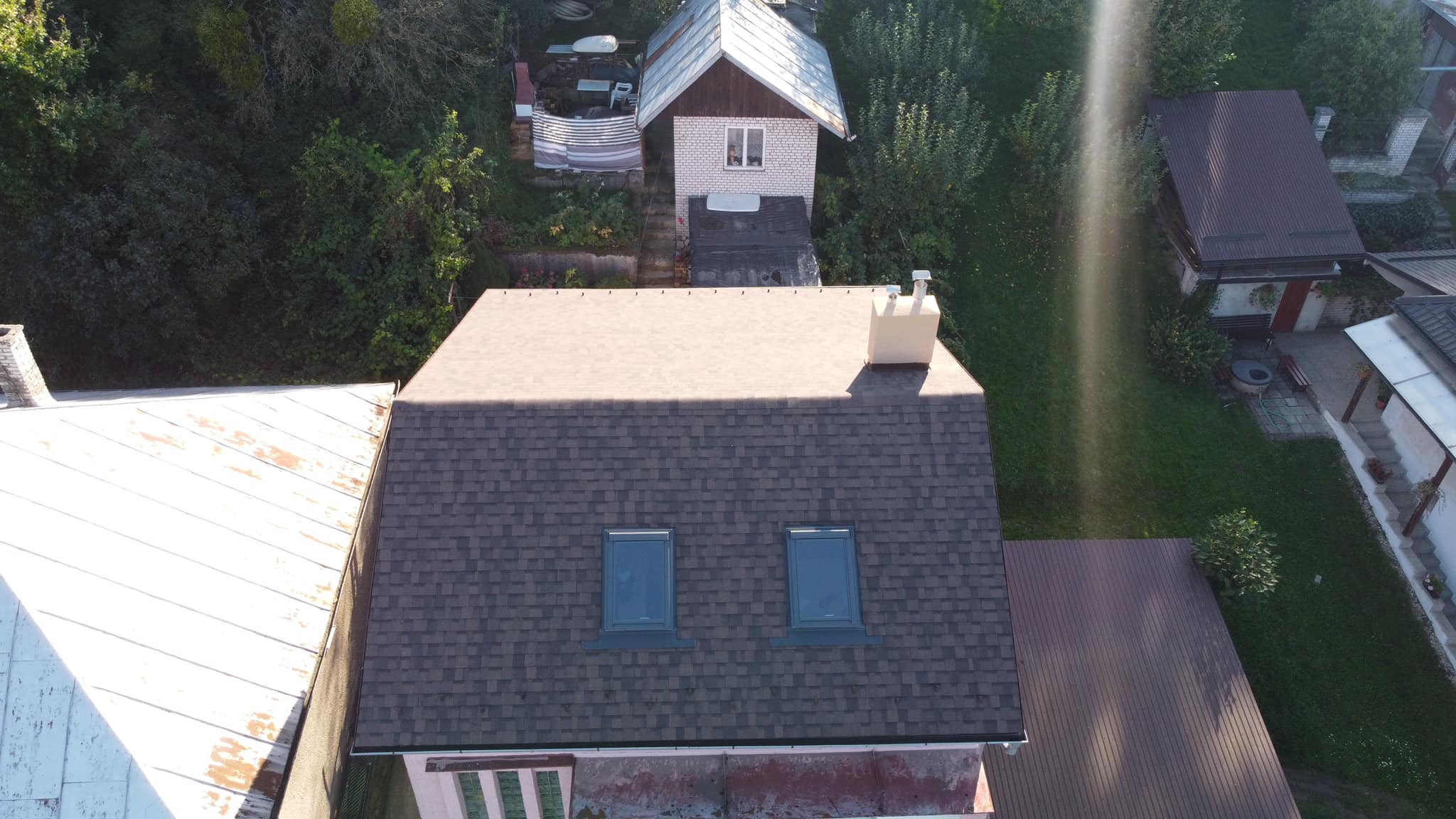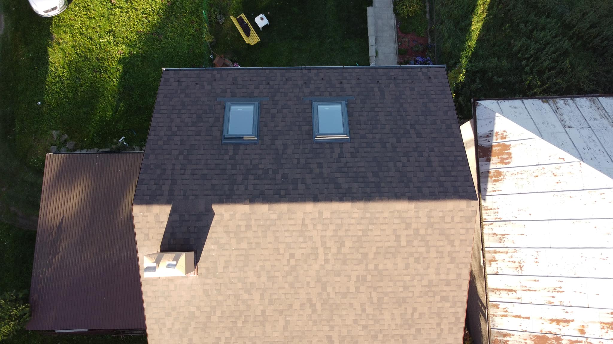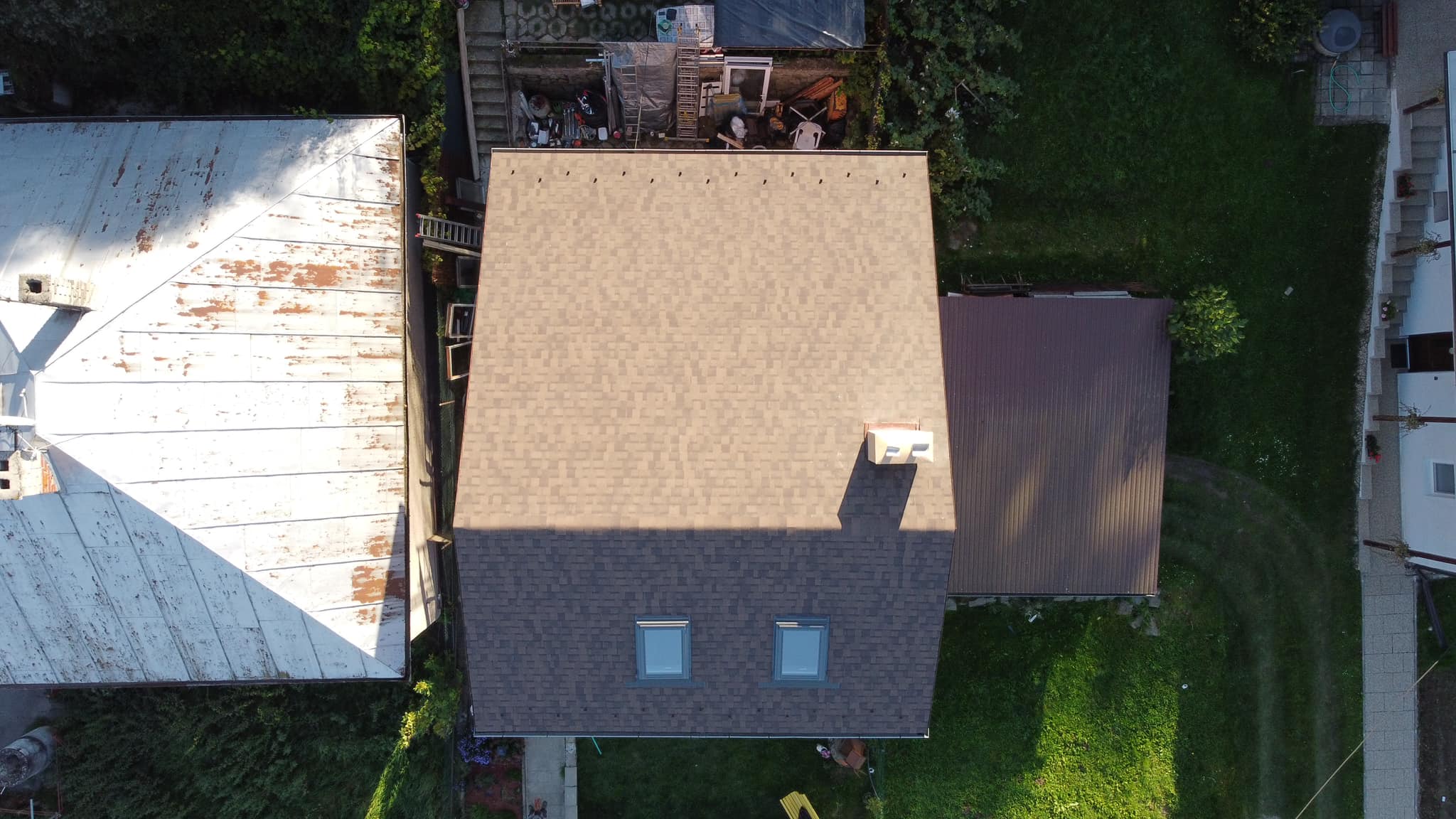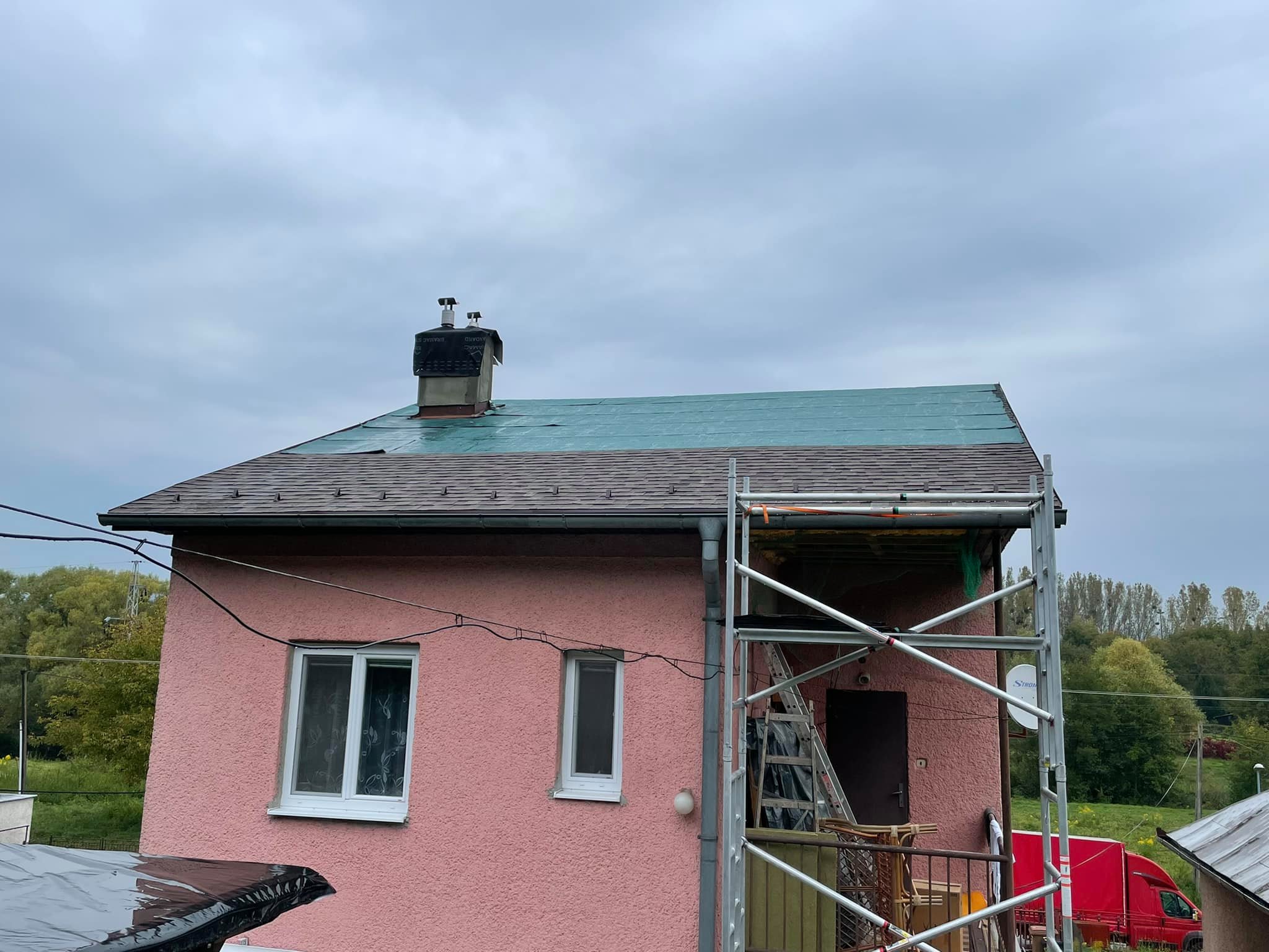 Rekonštrukcia strechy Rekonštrukcia strechy - prebitie starého kanadského šindľa za nový a montáž strešných okien Velux